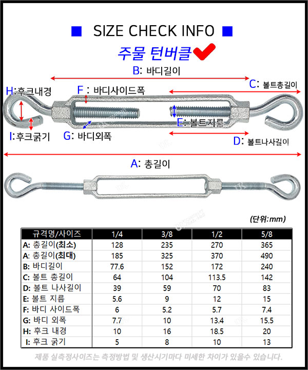 - 짜개 아이 후크형 턴버클