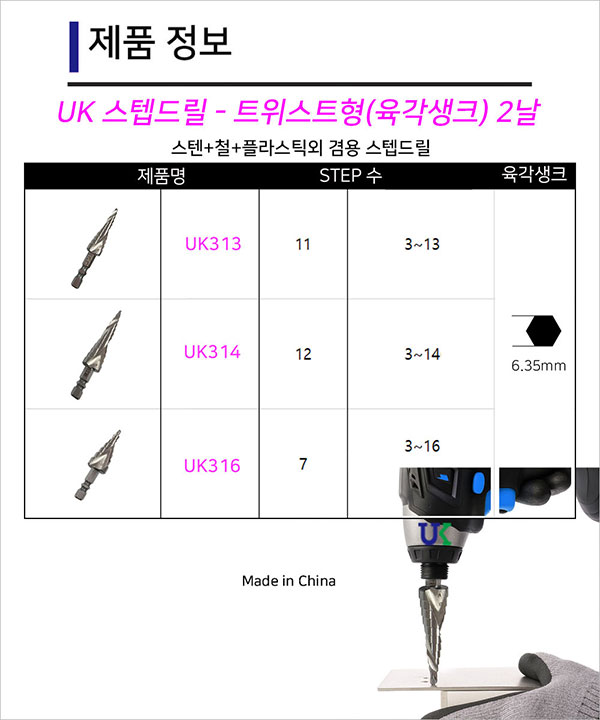 - Uk 스텝 드릴 트위스트형 육각샹크