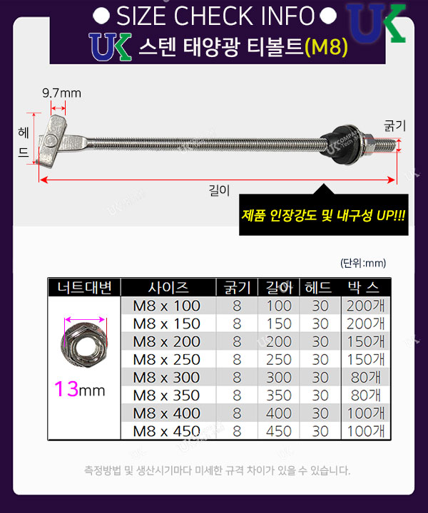 태양광 스텐 티볼트 M8 >> 제품 내구성 , 인장강도를 더욱 향상