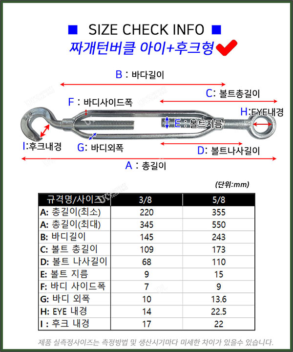 금속철물 | 짜개 아이 후크형 턴버클 | |
