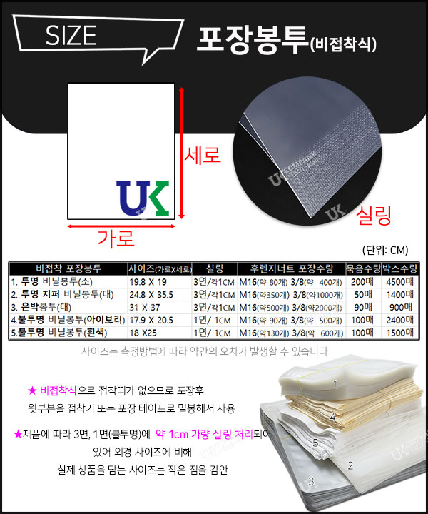 - 포장 비닐 봉투 비접착 소분 소포장