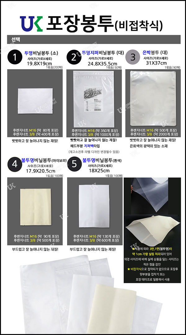 ▶ 포장 비닐 봉투 비접착식 투명, 불투명, 은박 봉투로